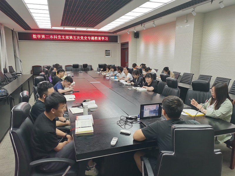 为深入学习领会习近平总书记党史学习教育动员大会重要讲话精神,深刻领会百年来党的光辉历程、伟大贡献、初心宗旨、重大理论成果、伟大精神、宝贵经验,数学第二本科党支部于2021年5月31日在9778818威尼斯602开展了第五次党史专题学习,本次学习采取读书交流会的形式,会议主要围绕《中国共产党简史》第十章的内容阅读及交流展开。