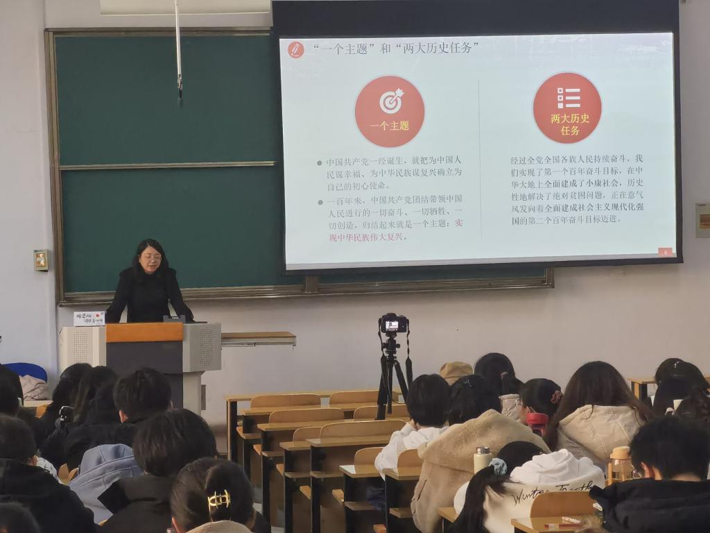 李书记从明白“学什么”、努力“深入学”和确保“学得好”三个方面展开讲述,带大家系统的回顾了中国共产党成立一百年来,团结带领全国各族人民开辟的伟大道路、创造的伟大事业和取得的伟大成就。从“一个主题”、“两大历史任务”、“三个不变”、“三个深刻改变”、“三个不负”、“四个伟大成就”等关键词入手,带领同学们学习了习近平总书记在庆祝中国共产党成立一百周年大会上的讲话;并以建党精神为核心,重点讲述了伟大建党精神形成的基础和条件、阐释了伟大建党精神的深刻内涵。最后,李书记勉励大家聚前行之力,不忘初心,走好新时代新征程。