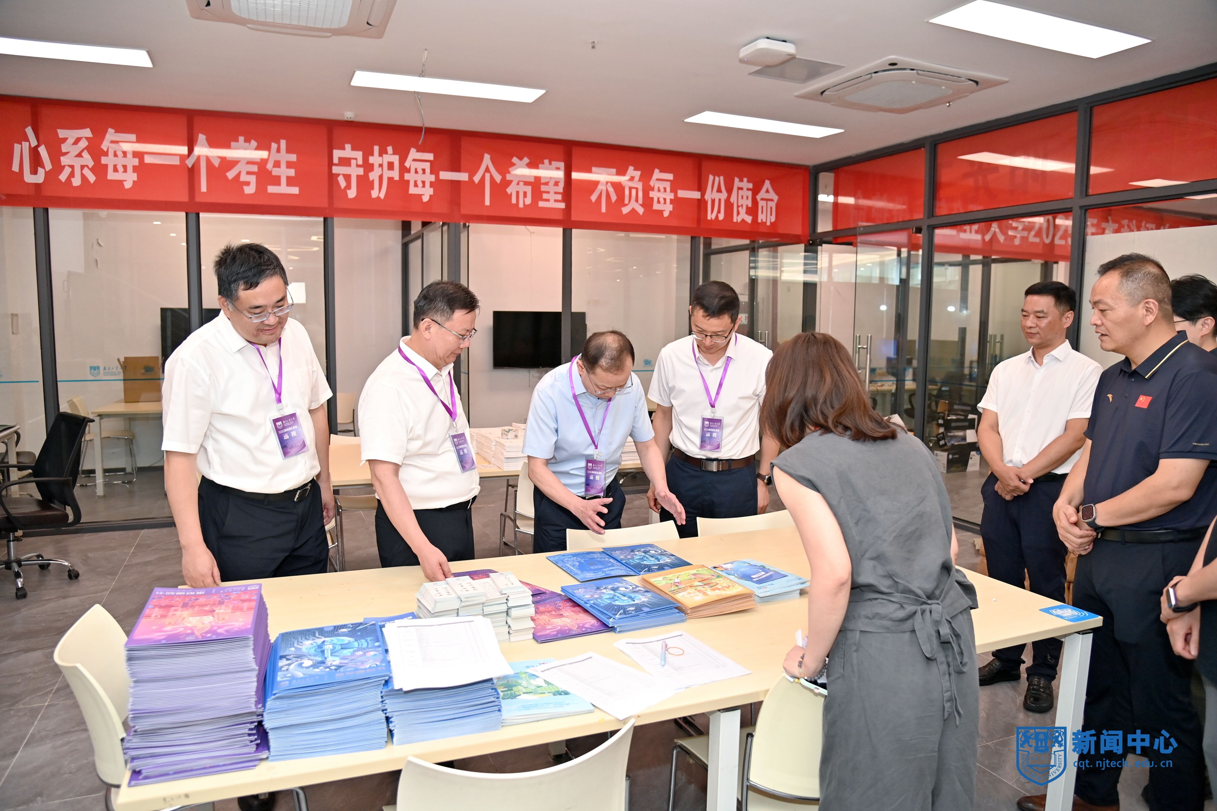校领导一行先后在江浦校区东南门岗、信息管理中心、图书馆、招生录取现场、北苑学生公寓项目部、弘毅楼实验室等重点区域进行安全专项检查工作,与安保、招生、施工、后勤、科研等一线工作人员及留校学生进行深入交流,详细了解师生员工暑期工作、学习、生活情况,对大家冒着高温酷暑保障学校运行、推进学校建设、开展科研攻关表达了诚挚问候,并送上防暑降温用品。