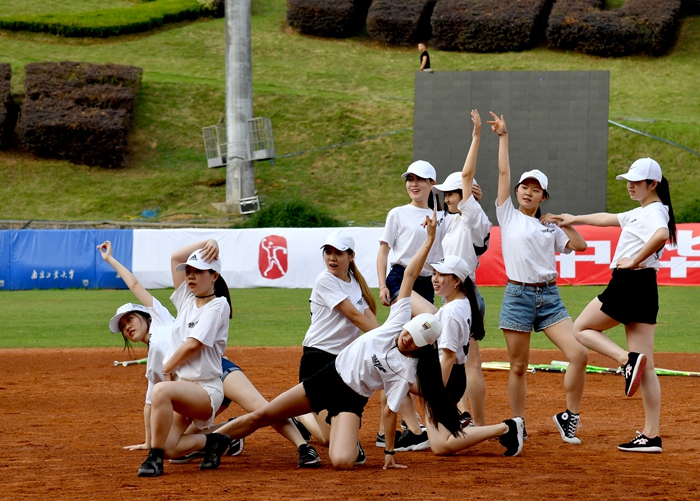 在开球仪式上,校大学生啦啦操队、龙狮俱乐部和街舞社团为观众呈现了精彩的现场表演,校国旗班举行了升国旗仪式。随后,国际棒垒球联合会主席Fraccari Riccardo、秘书长Benchoo Low、国家体育总局手曲棒垒球运动管理中心副主任谈莺、校党委书记芮鸿岩一同为江苏队—香港队比赛开球。