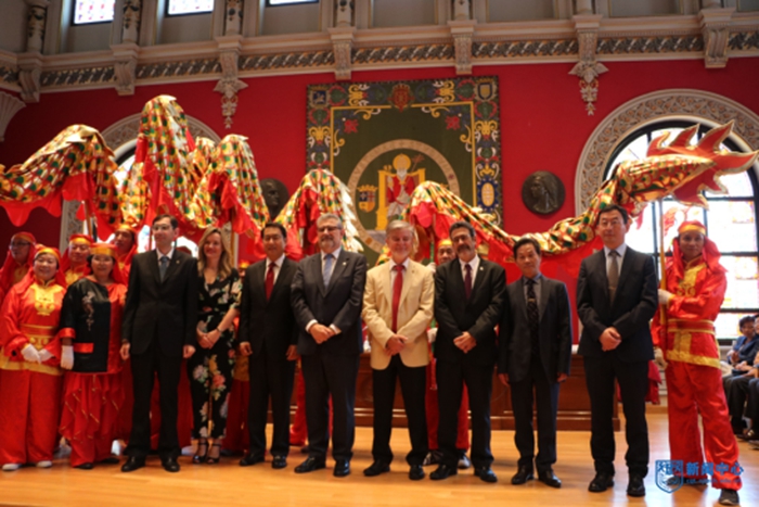 揭牌仪式上,来自中国的艺术家和师生们献上了中国传统乐器演奏、太极拳表演、舞龙舞狮等精彩节目,充分展现了中国瑰丽的传统文化,赢得来宾们阵阵掌声。