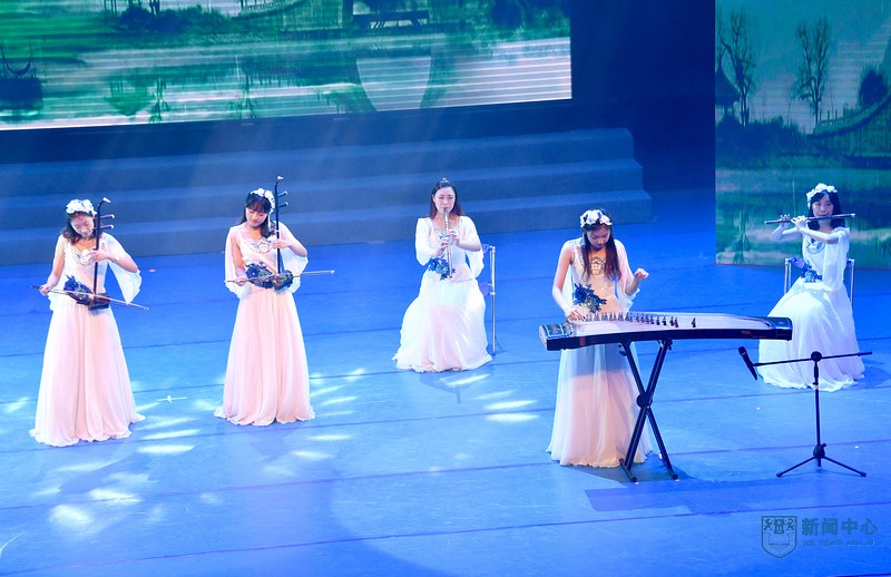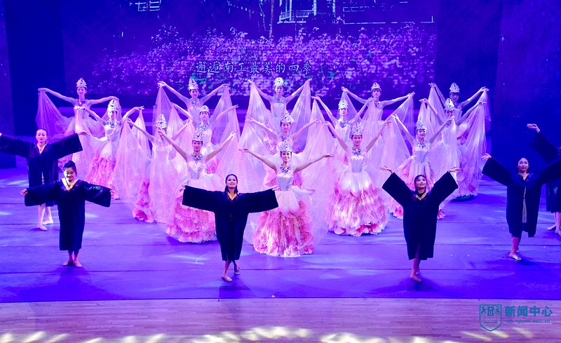 在“春”“夏”篇章中,民乐团表演的《雨碎江南》古筝琤瑽、笛声悠扬,勾勒出米乐春日的优美景象,歌伴舞《栀子花开》演绎着花香四溢、清新淡雅的青葱岁月。由潮爆公社等学生社团表演的街舞串烧《舞动青春》以炫丽而富有张力的舞姿展现出青春的个性与活力,独唱《最后一个夏天》诉说了毕业生们在米乐校园度过最后一个季节的真挚心意,后勤服务集团员工表演的小品《我在你身边》以学生与宿管阿姨间的平常事为背景,展现着脉脉温情。“米乐飞,飞向谁,巅峰问鼎归”,米乐学子豪情满怀、壮志在胸,晚会在歌伴舞《米乐南》中圆满落下帷幕。
