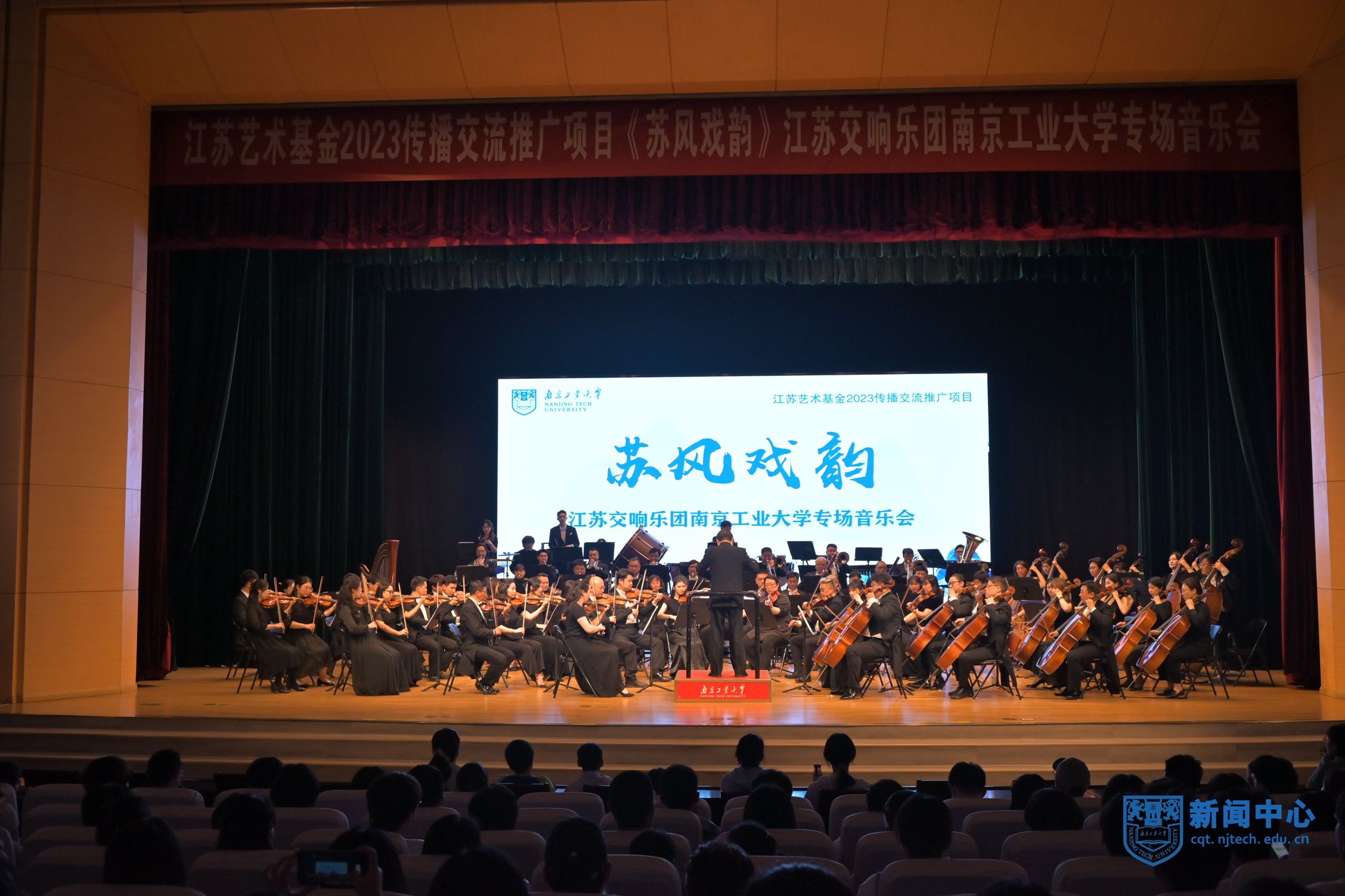 5月14日晚,江苏艺术基金2023传播推广项目江苏省交响乐团大型原创戏曲交响音乐会《苏风戏韵》在米乐博雅堂专场演出,全校师生近千人观看演出。