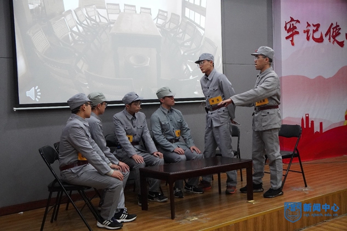 本次活动是在中国决战决胜全面建成小康社会之年的背景下,以“风卷红旗过大关”、“忽如一夜春风来”、“直挂云帆济沧海”三个篇章展开活动。党员同志们从党史、新中国史、改革开放史、社会主义发展史的“四史”学习中选取部分红色经典影视作品片段《遵义会议》、《上甘岭》、《车轮上的逆行者》、《钱学森》等,通过情景的设置和变换,带领全体师生穿越历史长河,激起深切的情感共鸣,体会一代代社会主义建设者在奋进开拓中的信仰力量。
