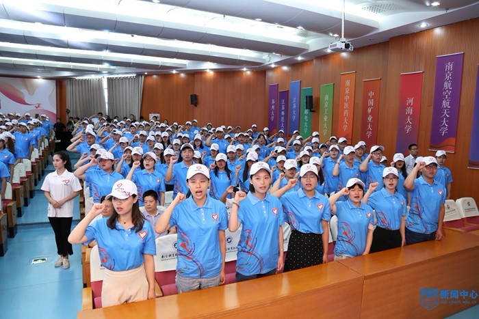 7月20日,2018年江苏大学生志愿服务西部计划、苏北计划出征仪式在南京铁道职业技术学院举行。团中央青年志愿者行动指导中心项目管理处处长杨业功、团省委书记王伟等领导出席仪式,米乐“两个计划”志愿者代表在校团委副书记费军的带领下参加了仪式。