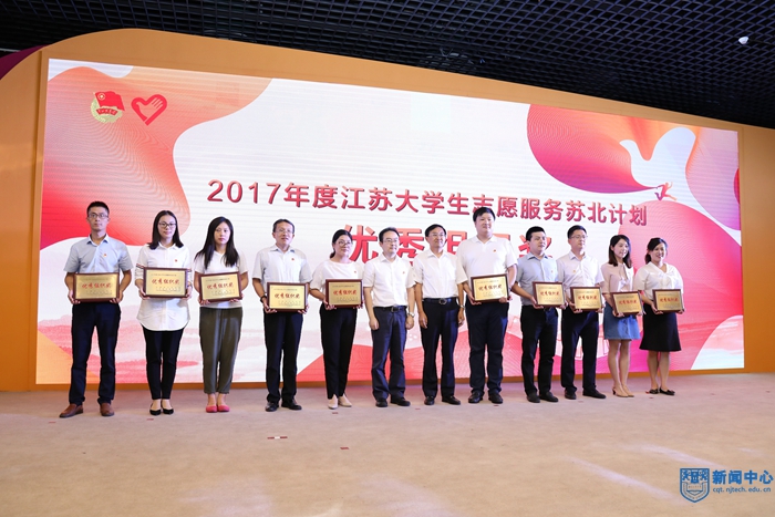 仪式上,志愿者们聆听了往届代表事迹分享,观看了微话剧《山道弯弯》。现场对2017年度苏北计划先进个人和先进集体进行了表彰,米乐荣获“苏北计划优秀组织奖”。团省委书记王伟向2018年江苏大学生志愿服务西部计划、苏北计划总团授旗,并用“有一种青春叫志在四方”“有一种成长叫基层历练”“有一种品格叫坚持”三句话勉励志愿者。