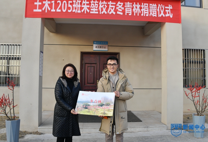 捐赠仪式上,熊中宏书记介绍了朱堃校友的相关情况;万永敏处长代表学校接受捐赠;丁贤副书记向校友颁发了捐赠证书。朱堃校友和凌红副处长共同为冬青林揭牌。