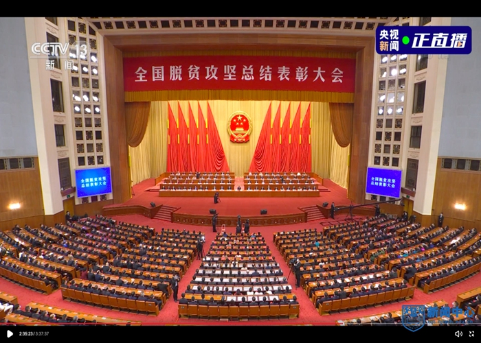 2月25日上午,全国脱贫攻坚总结表彰大会于在北京人民大会堂隆重举行。习近平主席向全国脱贫攻坚楷模荣誉称号获得者颁奖并发表重要讲话。大会对全国脱贫攻坚先进个人、先进集体进行表彰。