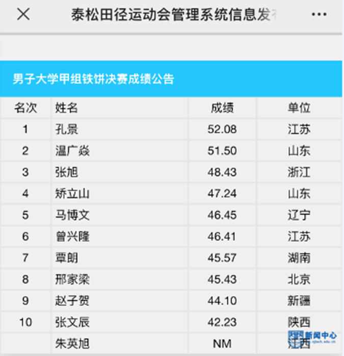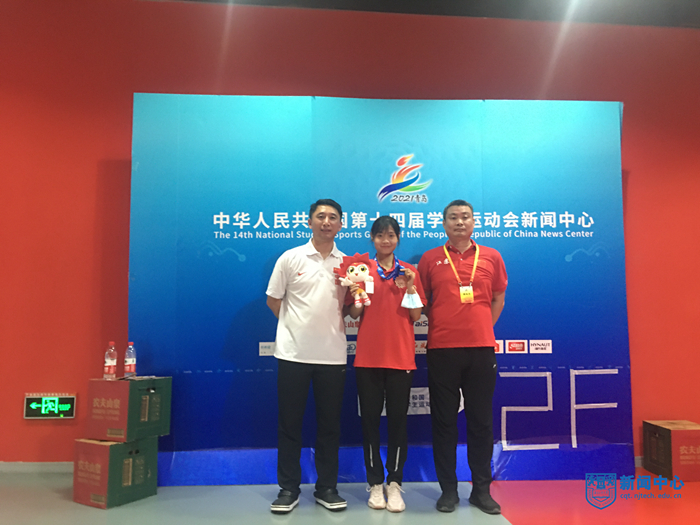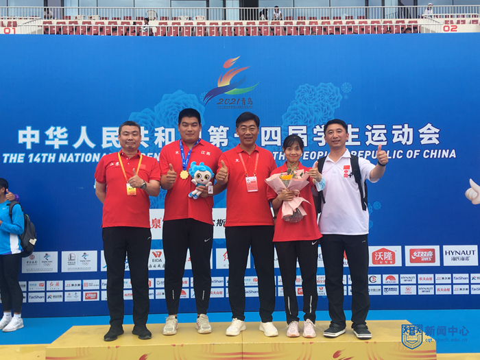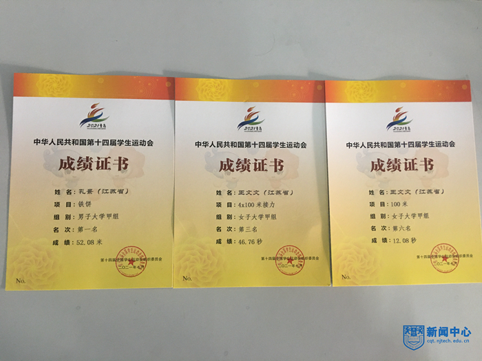 7月14日一17日,第十四届全国学生运动会在青岛举行。在体育学院教练员於鹏和李海兵两位老师的带领下,经济管理学院孔景和王文文两位同学代表江苏省参加了大学组田径项目的比赛,经过奋力拼搏,孔景同学勇夺男子甲组铁饼金牌,王文文同学荣获女子甲组4x100米接力铜牌和女子甲组100米第六名,圆满完成学运会任务。