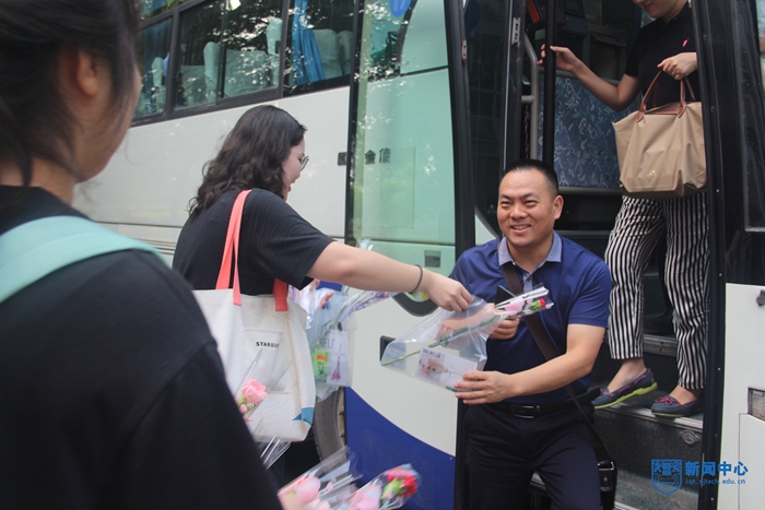 9月10日清晨7点半,第一班校车缓缓驶入厚学停车点。同学们走向下车点,为每位老师献上鲜花和润喉糖。校学生会和手语社同学表演手语舞蹈快闪《感恩的心》,并向老师深情道一声:“老师,您辛苦了!”