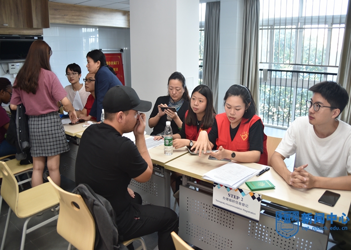 为方便留学生“一站式”办理所有入学手续,学校在北苑21号楼和浦江3号楼留学生公寓安排了集中报到点,计划财务部、校园安全部、后勤保障处等职能部门均安排专人现场办公,提高了工作效率。专业学院也积极参与新生接待,生工学院留学生新生所在课题组的老师和同学们来到报到现场,迎接远道而来的新同学。来自全校各个学院的中外学生志愿者手持引导牌、身着志愿服,引导留学生新生办理各项报到手续。审核材料、办理临住、购买保险、缴纳费用、安排住宿等报到流程清晰、明确,迎新报到现场秩序井然。