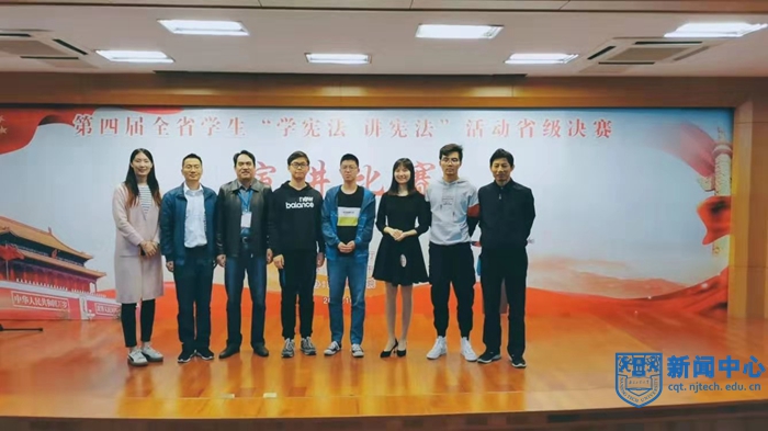 党的十八大以来,以习近平同志为核心的党中央着力推进全面依法治国,把实施宪法摆在全面依法治国的突出位置。根据教育部的统一部署,省教育厅开展了第四届全省学生“学宪法讲宪法”活动,比赛分为演讲比赛和法治知识竞赛。10月12日,胡月、郁程博两位同学从宁扬泰高校片区赛中顺利晋级决赛。演讲比赛决赛包括主题演讲和命题演讲两个环节,法治知识竞赛决赛包括知识考查和知识竞答两个环节。胡月同学在演讲比赛中落落大方、感情充沛、逻辑严谨,郁程博同学在法治知识竞赛中沉着稳定,表现优异,赢得了评委专家的肯定。