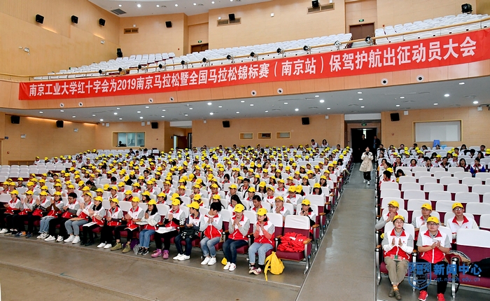 11月6日下午,2019年南京马拉松医疗保障志愿者出征动员大会在米乐江浦大礼堂顺利召开。到会领导和嘉宾有校党委常委、副校长、校红十字会会长牛生杰,南京市体育局局长陈卫红,江苏省红十字会卫生救护部部长聂城,南京市红十字会副会长张杰,江苏问源体育科技有限公司副总经理王玮。党委宣传部、学生事务部、团委、后勤保障处等学校职能部门负责人出席会议,大会由后勤保障处处长、校红十字会副会长朱兴同主持,校红十字会指导老师和全体医疗保障志愿者参与了此次动员大会。