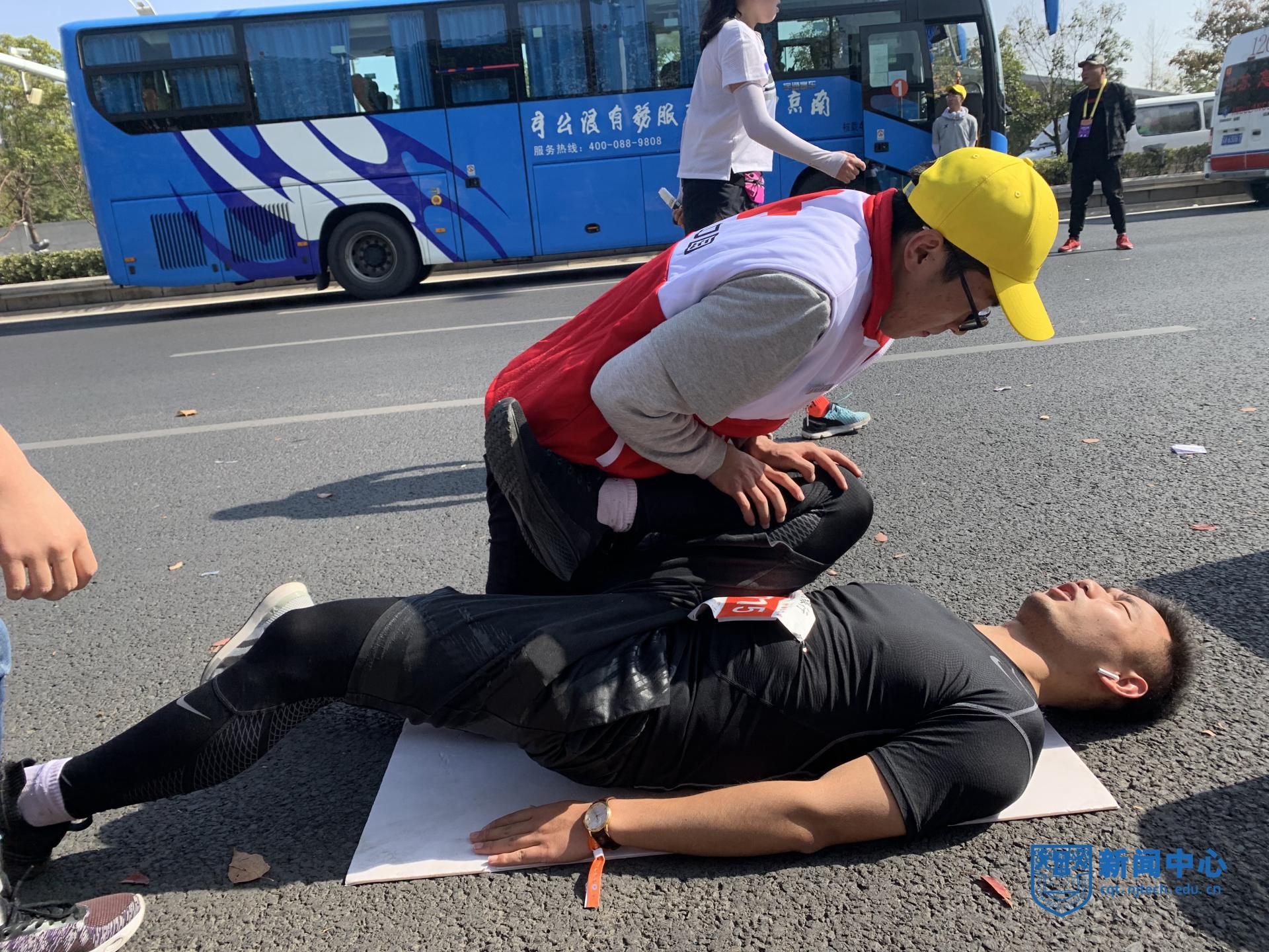 此次马拉松比赛,伤员的伤情大多集中在大小腿抽筋、肌肉拉伤上,米乐志愿者积极救助,并伴以适当的人文关怀,尽力让受伤的选手们感到温暖。上午11点左右,在36km医疗点附近一名外国跑者倒地呕吐,志愿者张正和张晓敏第一时间发现,做好紧急处理后,并立即叫来救护车人员,随后将伤者抬上担架送到救护车上进行救治,其间救护车志愿者杨浩帆充当翻译,志愿者吕坤昆全程陪同,确保伤者的生命安全。