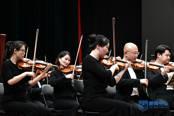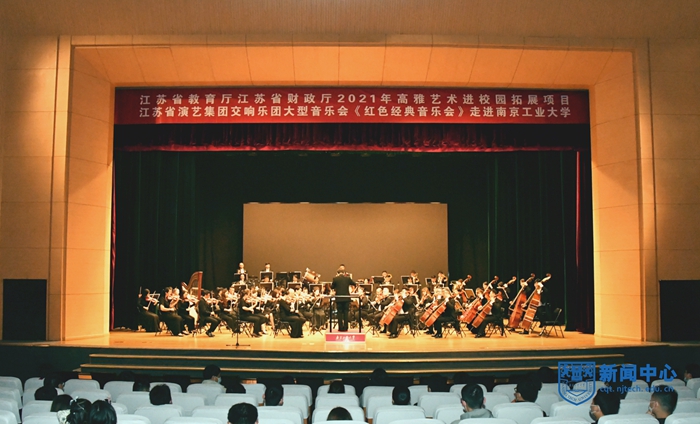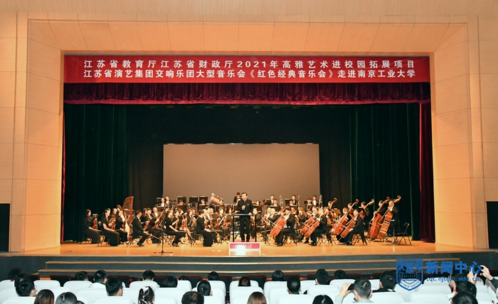 10月26日晚,江苏省教育厅江苏省财政厅2021年高雅艺术进校园拓展项目江苏省演艺集团交响乐团大型音乐会《红色经典音乐会》在米乐博雅堂举行专场演出,校党委常委、党委宣传部部长张健,江苏省演艺集团交响乐团党支部书记丁必武、副团长王志强亲临现场。