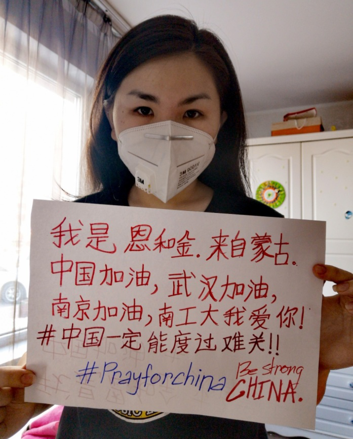 我现在在蒙古,但我每天都关注着中国的疫情,相信中国会很快渡过难关的!中国加油,武汉加油!南京加油!