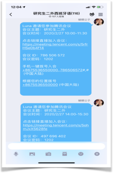 搭建腾讯屏幕分享平台,通过分屏语音系统,用在线群研讨、留言的方式与老师互动交流。来自全国各地乃至身在国外的留学生,通过任课老师发布的腾讯屏幕分享平台聚集在一起了。虽然“宅家”,但距离却仿佛更近了。