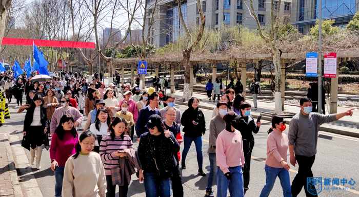 冬去春来,万象更新,春天的校园到处充满着生机与活力。3月8日下午,校工会组织开展了“一起向美丽”2022年国际妇女节系列活动之美丽校园健身走。党委常委、副校长牛生杰,党委常委、宣传部部长张健出席开幕式。开幕式由校工会副主席陈晓霞主持。