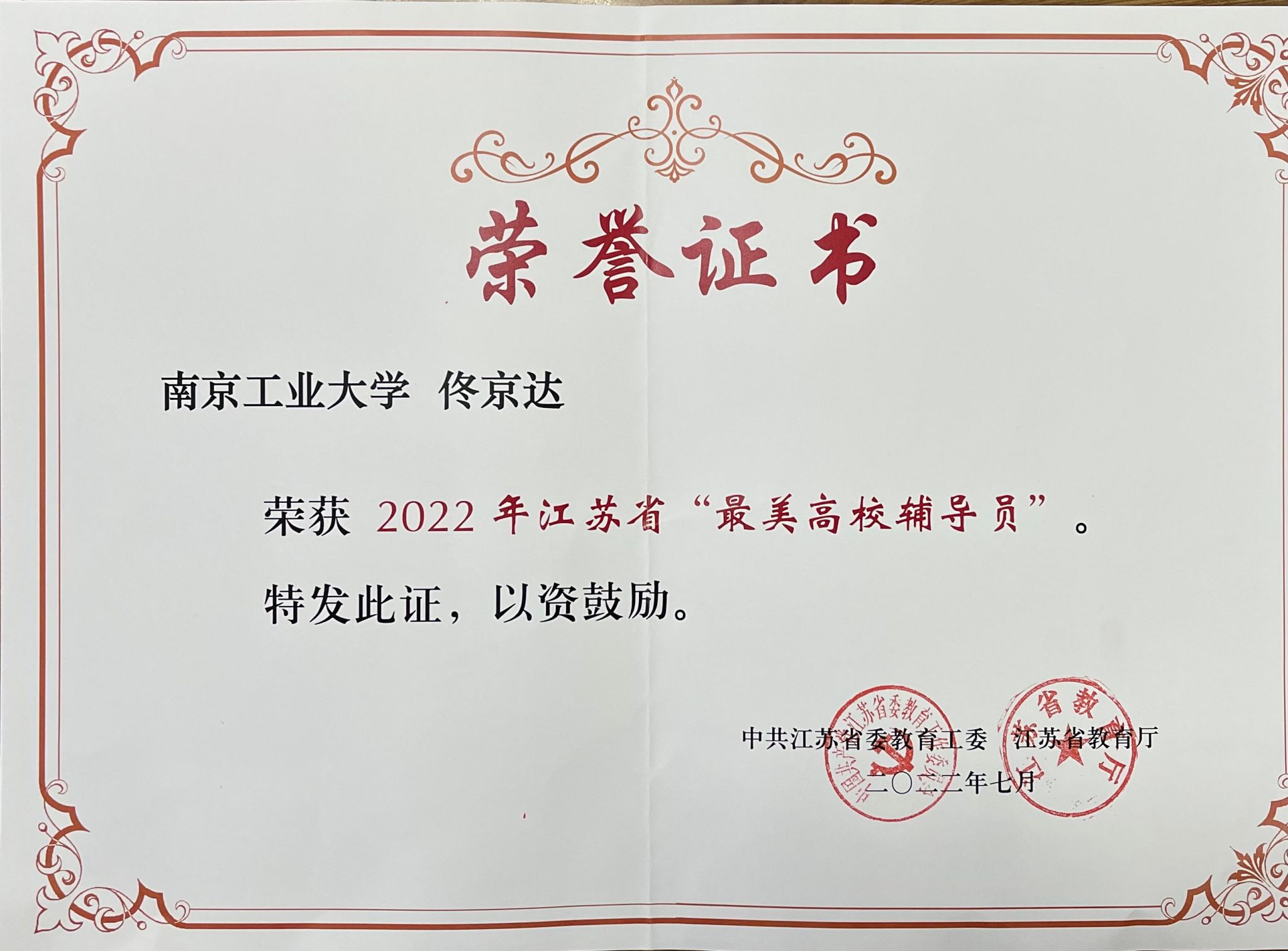 第十二届“江苏省高校辅导员年度人物”暨2022年“最美高校辅导员”推选活动由省委教育工委、省教育厅主办,经过学校推荐、材料审核和专家评审,推选2022年江苏省“最美高校辅导员”10人,第十二届“江苏省高校辅导员年度人物”10人、提名奖获得者20人、入围奖获得者30人。