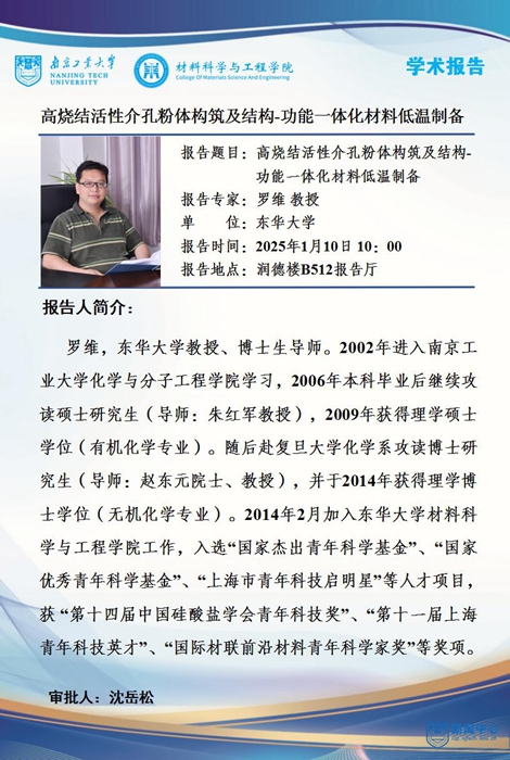 报告题目:高烧结活性介孔粉体构筑及结构-功能一体化材料低温制备