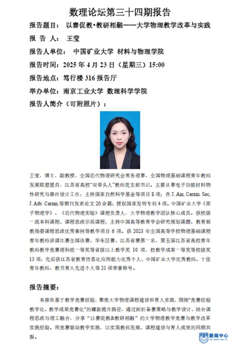 报告题目:以赛促教•教研相融——大学物理教学改革与实践