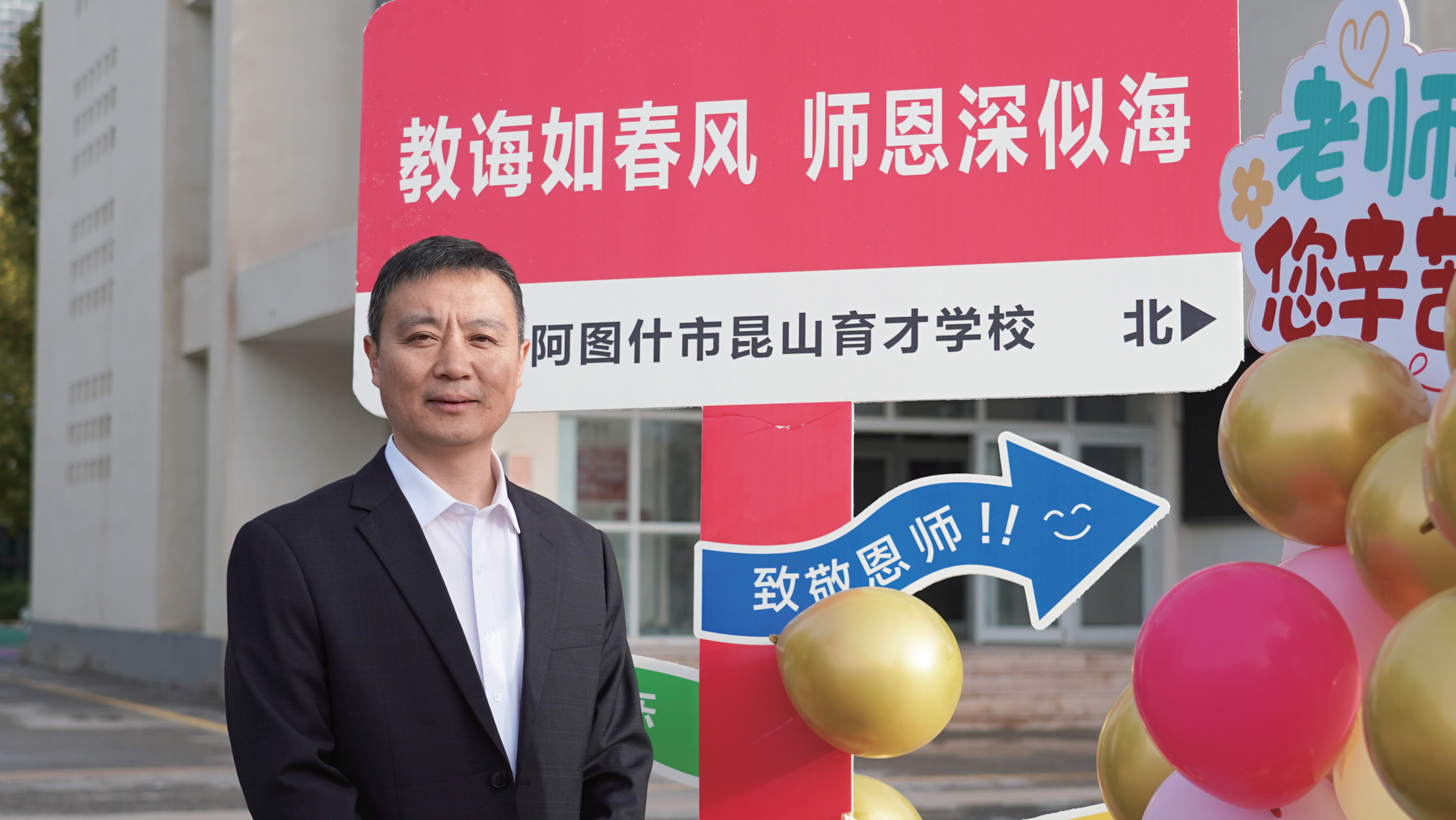 2024年8月,昆山市张浦震阳实验学校副校长石国华毅然作别家乡,扛起苏州市第三批“组团式”援疆支教团团长重任,奔赴距昆山万里之遥的西部边陲新疆克州阿图什市,担任阿图什市昆山育才学校校长。他以教育为笔、以热爱为墨,开启了一场跨越山海的教育远征,在边疆热土上绘就了一幅育桃李、促团结的动人画卷。