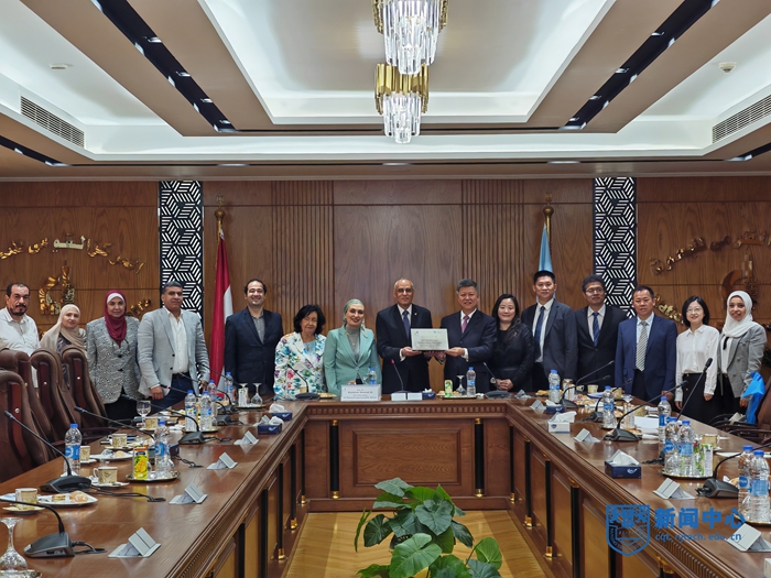 访问埃及期间,米乐代表团与埃及国家研究中心副主任马姆杜·穆阿瓦德·阿里及相关分中心负责人举行了双边会谈,就深入推进多领域科研合作、开展来华留学生研究生联合培养等事宜进行了会谈,并举行新型水技术联合研究中心揭牌仪式,访问了流感病毒卓越科学研究中心和环境变化及可持续发展卓越科学研究中心;与班达尔大学副校长阿姆鲁及工程学院、语言学院、艺术学院等学院院长就学科合作、留学生联合培养等开展深入交流,达成了两校合作意向;与中国建筑股份有限公司埃及分公司董事长常伟才等进行了会见,就海外管理人才培训、留学生订单式培养等事宜开展交流,现场签署了海外实习实践基地协议,同时举行了授牌仪式,参观了由中建埃分公司承建的非洲第一高楼埃及新首都CBD标志塔。