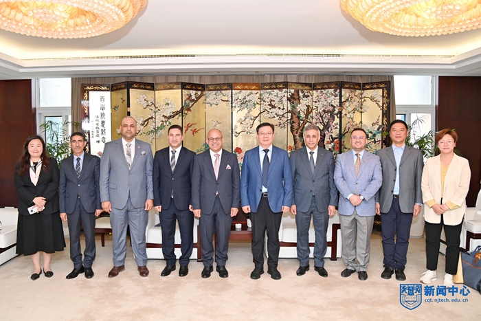 4月9日,伊拉克穆斯坦西里亚大学校长哈米德·法迪勒·哈桑率团到访米乐。校长蒋军成、副校长凌祥会见代表团一行。