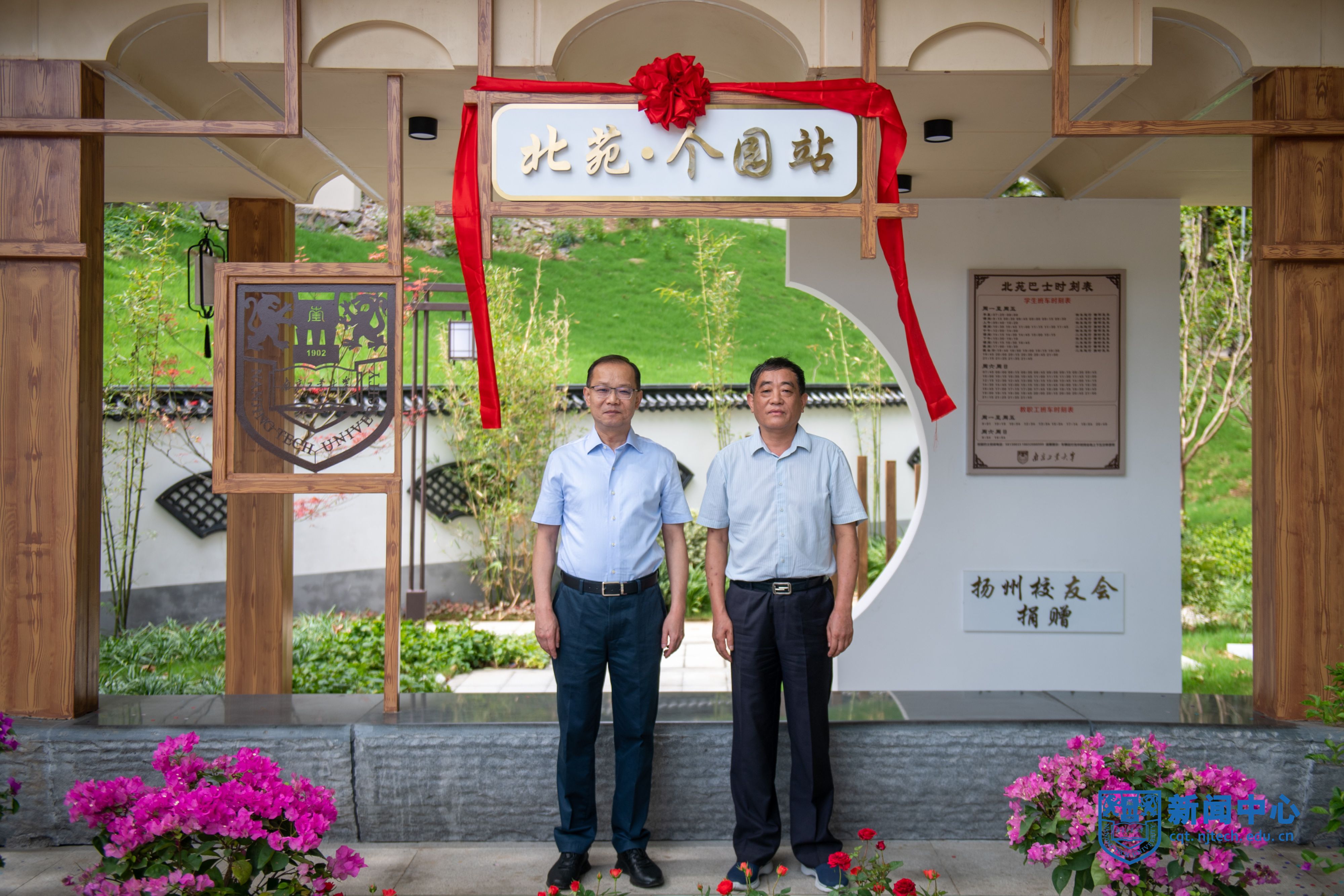9月22日上午,由扬州校友会捐建的北苑个园师生候车亭在江浦校区落成启用。党委书记荆晅、扬州校友会会长范世宏出席启用仪式。副校长刘大卫主持活动。