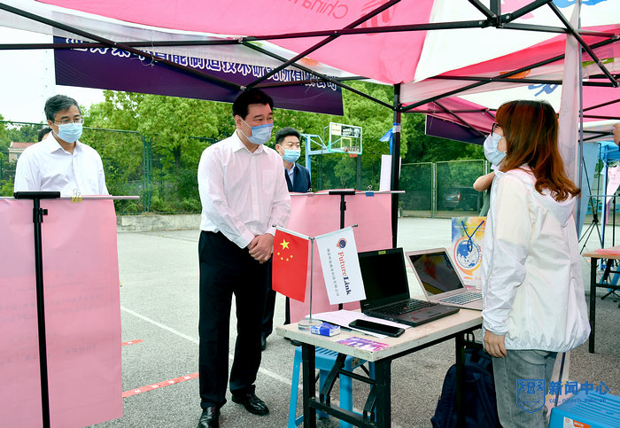 省委教育工委副书记苏春海莅临招聘会现场进行指导。他表示,米乐大在全国两会后率先启动线下招聘会,为毕业生高质量就业搭建平台,开了个好头。各高校要在采取疫情防控措施、保证安全的前提下,更加有序高质量地组织好线下招聘。